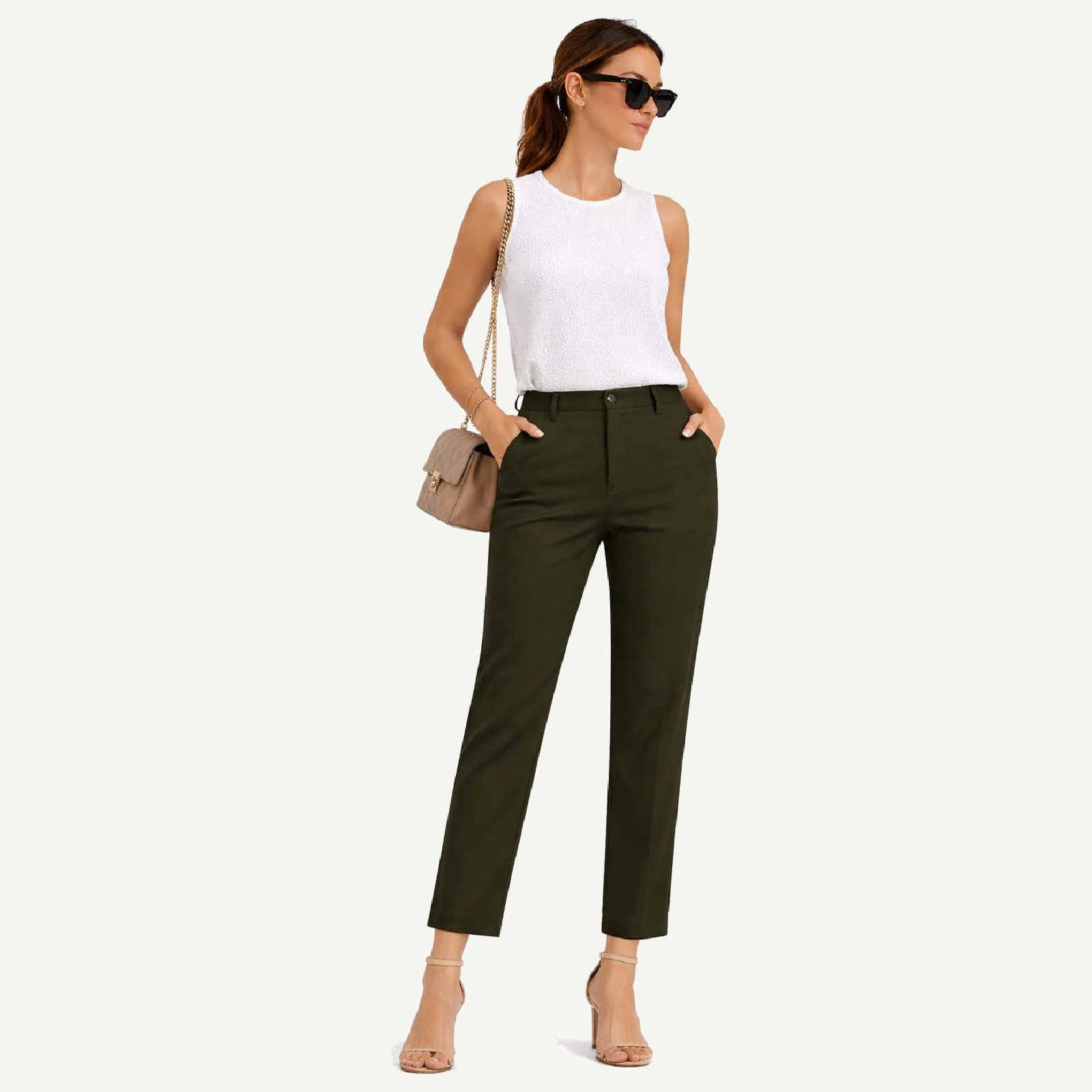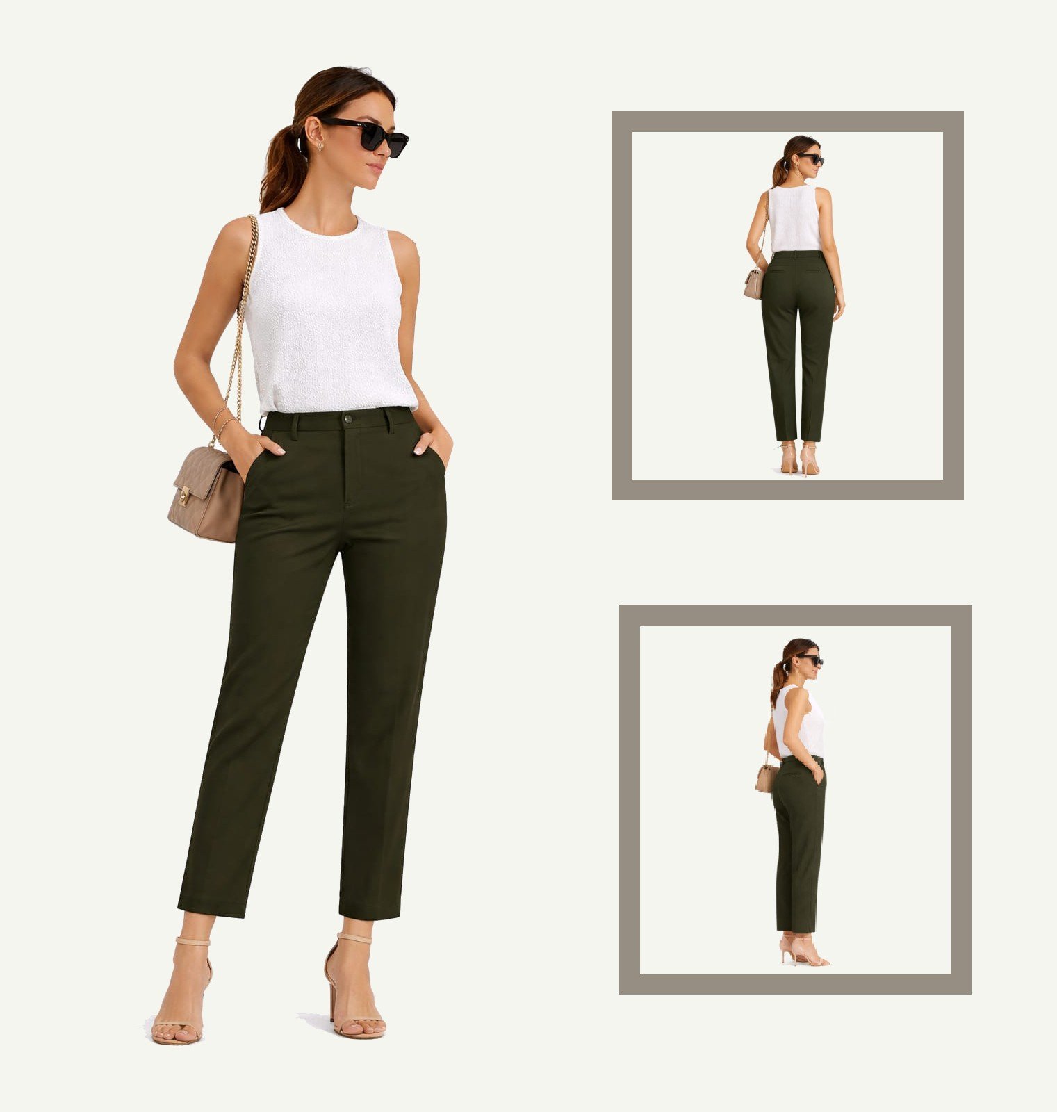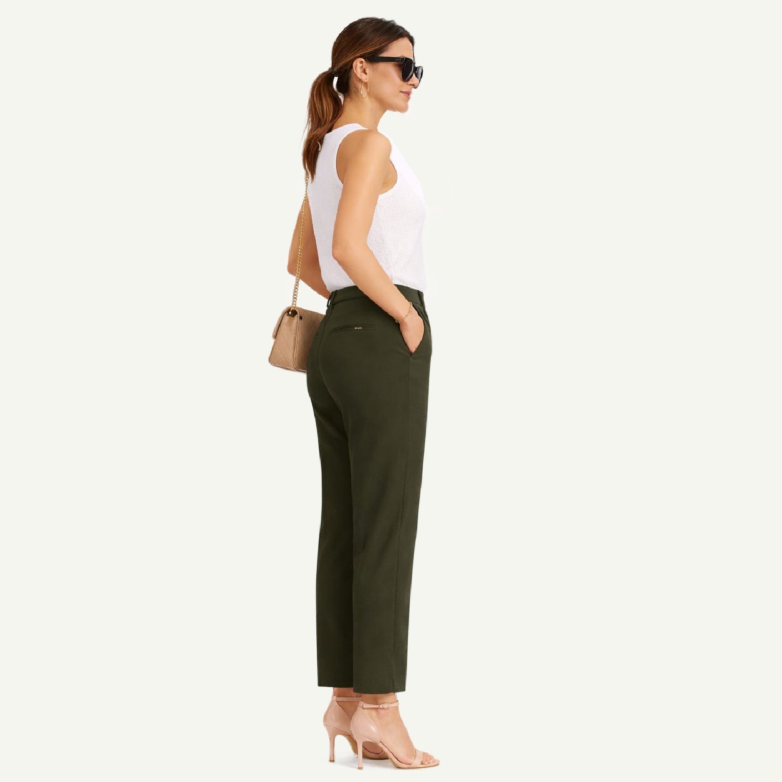 Ένα διαχρονικό παντελόνι σε χακί-λαδί τόνο που συνδυάζει την κλασική αισθητική με μια διακριτική μοντέρνα πινελιά. Η γραμμή του παραμένει κομψή και ισορροπημένη, ενώ το ελαφρώς πιο κοντό μήκος στον αστράγαλο με μικρό σκίσιμο στο πλάι δίνει κίνηση και στυλ στο τελείωμα.