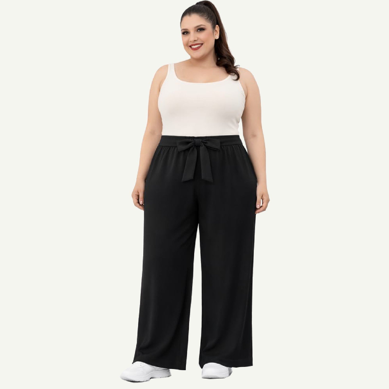 Plus size παντελόνι σε ίσια γραμμή, σχεδιασμένο για άνετη εφαρμογή και κομψό αποτέλεσμα.