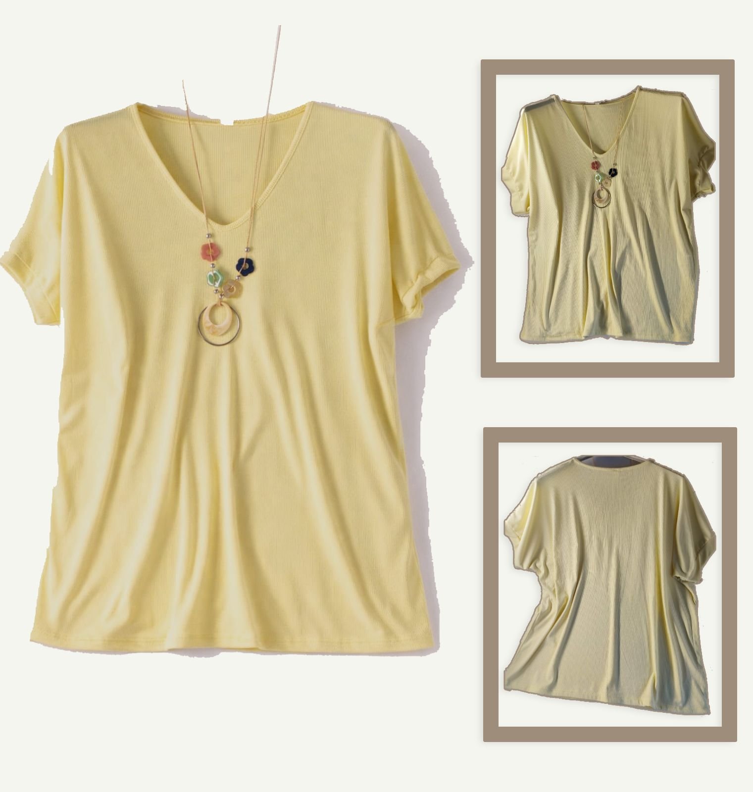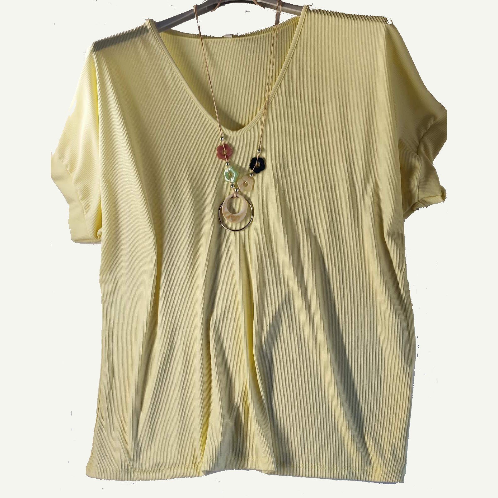 Χυτή γυναικεία μπλούζα με κομψή rib υφή, κατασκευασμένη από μαλακό και δροσερό ύφασμα 95% βισκόζη και 5% ελαστάνη.